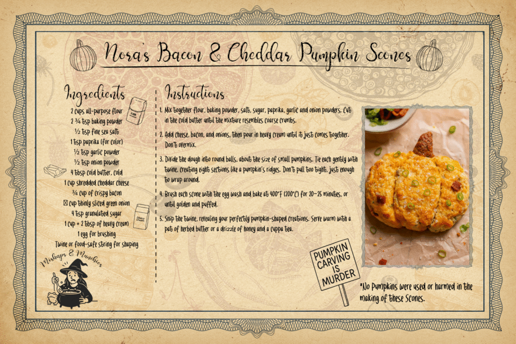 In her honour, this Savoury Pumpkin Scone recipe transforms the spirit of her rebellion into something golden, buttery, and heart-warming. The original inspiration comes from a yummy savoury scone recipe, but is reimagined as pumpkin-shaped pastries that nod to Nora’s legacy: no stabbing, no scooping—just sculpting with love. Thank you Nora for being my inspiration for this munchie.